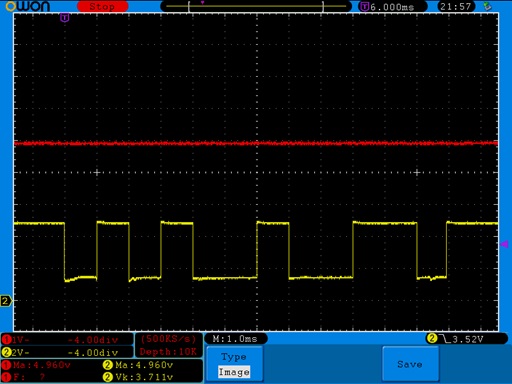 出力信号は常時34.4ms周期で何か信号をだしている様です。拡大。