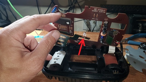 更に分解してみると、なんと赤外LEDがぐらぐら。赤外LEDの足のはんだが割れていました。