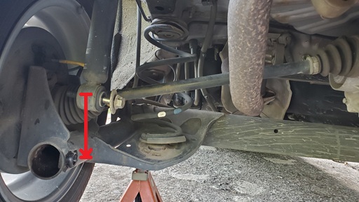 これ以上リアサスビームを下げるとブレーキホースが千切れてしまいます。
