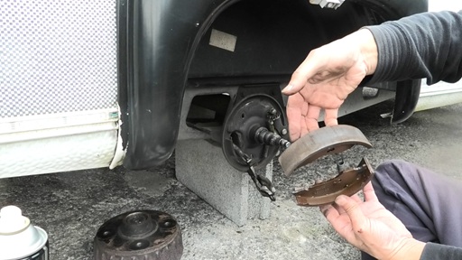 ブレーキシューが無くてもトレーラーは動かせます。ドラムは戻しておきます。