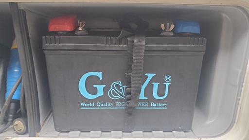 バッテリーはG&Yu SMF27MS-730 というディープサイクルバッテリーが付いていました。2019-3製ぽいです。