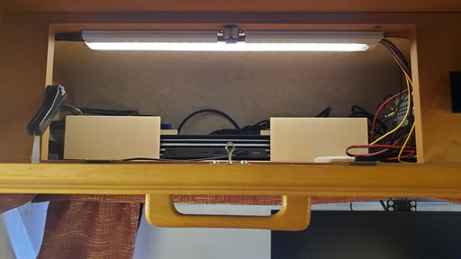 以来ただ棚の中に置いていたのですが、走行中の振動等を考慮してパソコンラックを作ろうと思います。