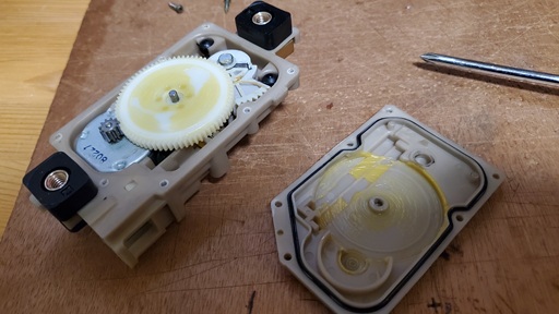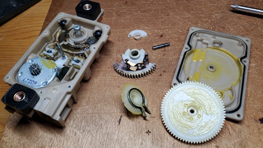 モーターとギアが見えます。更に分解します。