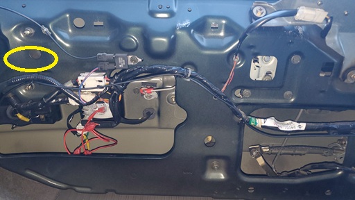 黄色丸印の所の裏にロックアクチュエーターがあるので取り外します。